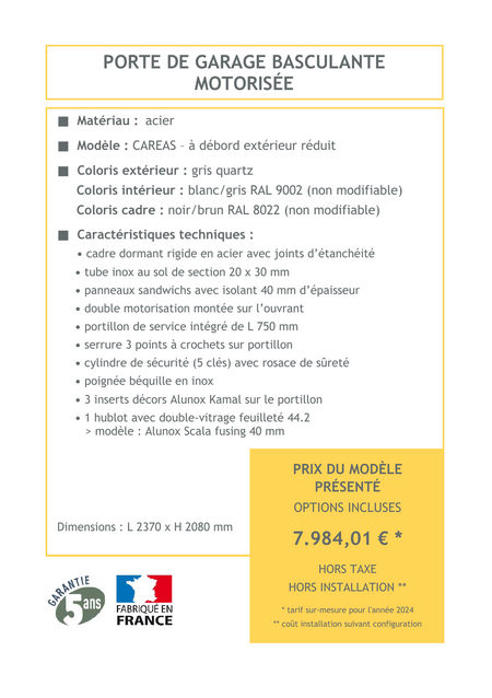 La porte de garage basculante, disponible en métal, PVC ou bois, combine solidité et design soigné pour embellir votre maison. Le métal garantit une durabilité à toute épreuve, le PVC offre une solution légère et économique, tandis que le bois apporte une touche naturelle et élégante. Pratique et facile à manipuler, cette porte basculante maximise l'espace de votre garage tout en assurant une sécurité optimale.